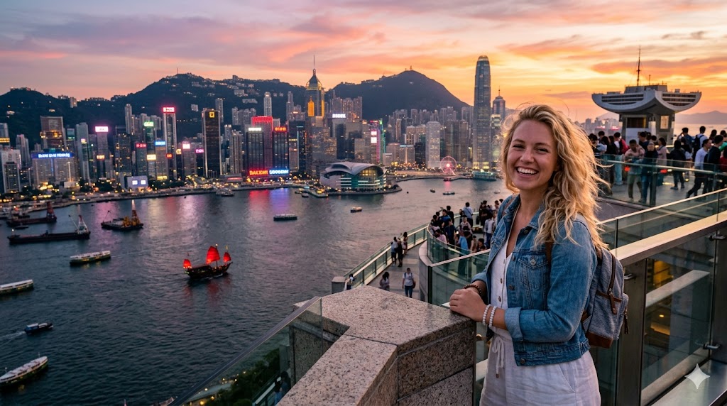 Il tessuto urbano di Hong Kong divenne celebre per la sua densità estrema e per l'accostamento di elementi disparati. Da un lato, le ambizioni verticali si materializzarono in icone dell'architettura modernista e hi-tech come l'HSBC Building di Norman Foster, la Bank of China Tower e il Lippo Centre, che compongono lo skyline frastagliato incorniciato dai picchi di giada come il Victoria Peak. Proprio dal Victoria Peak, il punto più alto dell'isola, la vista sull'iconico skyline dominato dai grattacieli e sull'enorme porto naturale lascia senza fiato chi lo visita, come confermano i viaggiatori occidentali e le creator, come Kira, che spesso vi realizzano spettacolari riprese. Dall'altro, la topografia della città si distingue per l'inaspettata presenza della natura: contrariamente agli stereotipi di giungla d'asfalto, oltre il 40% del territorio (incluse l'Isola di Lantau con il suo iconico Grande Buddha e percorsi escursionistici) è designato come parco protetto.