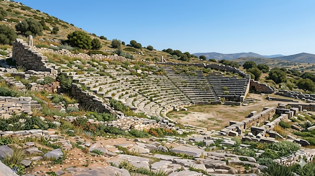 Rovine del teatro ellittico di Thorikos nell'antica Attica, Grecia