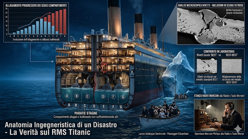 Il naufragio del Titanic non fu solo l'esito di un iceberg, ma la somma di compromessi progettuali, materiali di seconda scelta e silenzi radio. L'analisi metallurgica moderna ha svelato la verità nascosta in tre milioni di rivetti, rivelando come la più grande nave del mondo fosse minata da una fragilità che il gelo dell'Atlantico trasformò in catastrofe. LEGGI TUTTO L'ARTICOLO