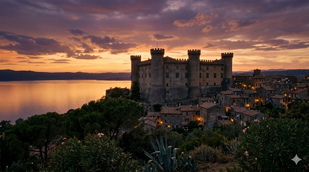 La storia insediativa del sito è antica: i resti di una città etrusca sono stati ritrovati nelle immediate vicinanze, e la zona fu sede di una mansio romana lungo la Via Claudia. Ma è nel Medioevo che Bracciano acquista la sua fisionomia definitiva: il borgo medievale si stringe intorno al castello come a una rocca naturale, e il castello stesso diventa il nucleo di un sistema difensivo che controlla l'accesso al lago da ogni direzione.