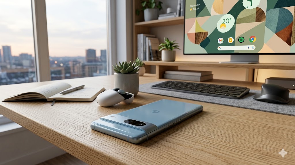 Smartphone Google Pixel appoggiato su una scrivania minimalista