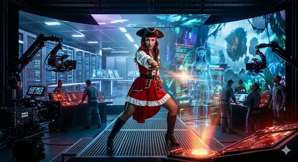 Vega AI posa su un set cinematografico, ricevendo le consegne