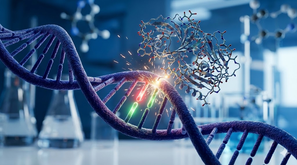 Le quattro basi del DNA, adenina, timina, guanina e citosina, formano le lettere del codice genetico. Molte malattie monogeniche gravi, come alcune forme di anemia falciforme, beta-talassemia e ipercolesterolemia familiare, sono causate dalla sostituzione di una singola lettera nel punto sbagliato. Il base-editing permette di correggere questi errori puntiformi con una precisione e una sicurezza nettamente superiori al taglio tradizionale, riducendo drasticamente gli eventi indesiderati fuori bersaglio.