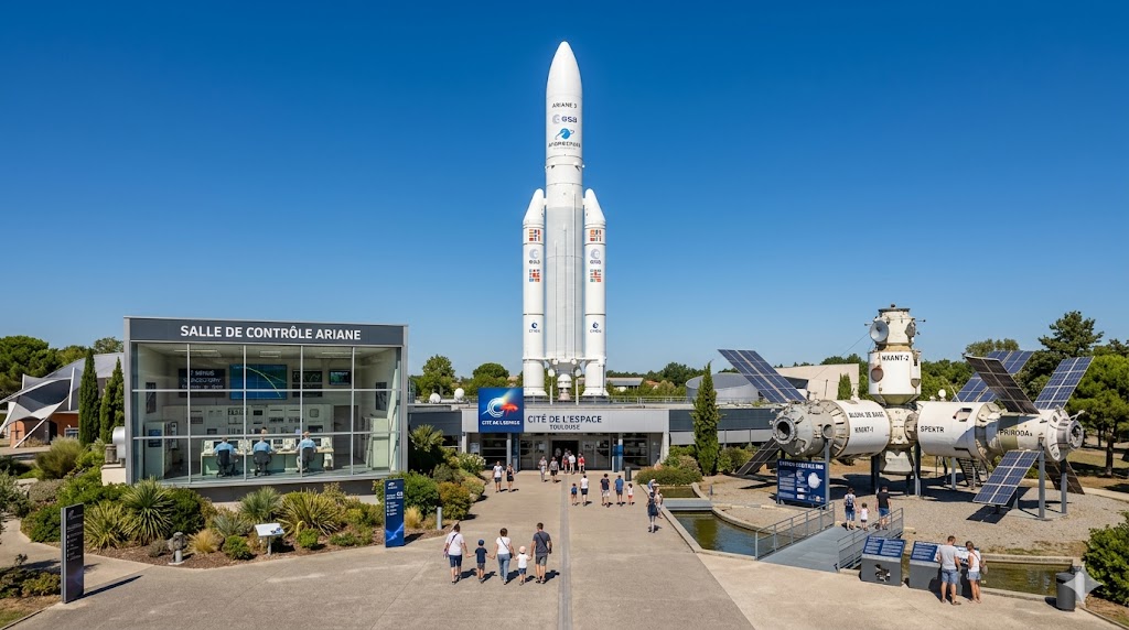 A donare una patina di ineguagliabile realtà a questo ecosistema metallico, il CNES ha prestato in via permanente artefatti che hanno realmente galleggiato tra le stelle. I visitatori possono esaminare l'ergometro originale (la rudimentale bicicletta spaziale necessaria per combattere la brutale atrofizzazione muscolare subita in assenza di peso) e i blocchi operativi dell'esperimento FERTILE, ideato per studiare le anomalie di fecondazione e sviluppo embrionale degli anfibi al di fuori della biosfera terrestre. A completare questa colossale macchina dell'intrattenimento formativo vi sono strutture multimediali impareggiabili. Il "Terr@dome", uno stupefacente emisfero di 25 metri di diametro, agisce come una macchina del tempo che ripercorre l'evoluzione dal Big Bang all'accrezione planetaria che ha formato il nostro sistema solare. Inoltre, il massiccio edificio "Astralia" funge da polo della visione cinematografica spaziale, incorporando un planetario da 280 posti dotato di una cupola con schermo emisferico di 600 metri quadrati e una mastodontica sala IMAX 3D da 300 posti. Qui vengono proiettate produzioni originali e sequenze documentaristiche vertiginose girate direttamente nello spazio dagli equipaggi internazionali (come Hubble 3D o le missioni ISS), sfumando definitivamente i confini tra intrattenimento turistico e illuminazione scientifica documentale. La Cité de l'Espace rappresenta un modello di come la divulgazione scientifica possa e debba essere esperienziale: non si limita a raccontare l'esplorazione spaziale, ma la fa vivere in prima persona attraverso simulazioni autentiche e artefatti reali, ispirando le generazioni future a guardare verso le stelle con gli strumenti della conoscenza tecnica. La Cité de l'Espace di Tolosa dimostra che il sogno della conquista spaziale non si nutre solo di eroi e lanci spettacolari, ma di ingegneri anonimi, di simulatori meticolosi e di repliche terrestri che permettono a chiunque di comprendere la complessità e la bellezza di vivere oltre l'atmosfera.