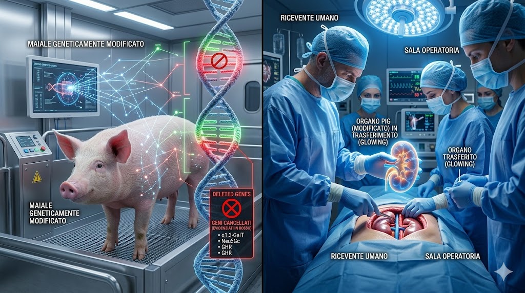 Gli xenotrapianti di organi da maiali geneticamente modificati stanno per diventare realtà clinica ordinaria. Grazie al CRISPR e all'eliminazione di geni virali porcini, il rischio di rigetto è drasticamente ridotto. Nel 2025-2026 i primi trapianti di reni e cuori suini su pazienti umani aprono una nuova era.LEGGI TUTTO L'ARTICOLO