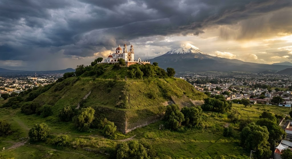 La Grande Piramide di Cholula in Messico è la più grande struttura mai costruita dall'uomo per volume: 4,45 milioni di metri cubi. Coperta di vegetazione da secoli, appare come una collina naturale con una chiesa spagnola in cima. Un gigante nascosto. LEGGI TUTTO L'ARTICOLO