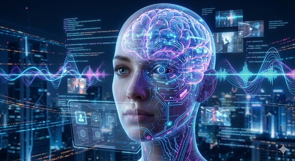 Intelligenza artificiale generativa multimodale 2026, interazione uomo-macchina con testo immagini audio e video in tempo reale