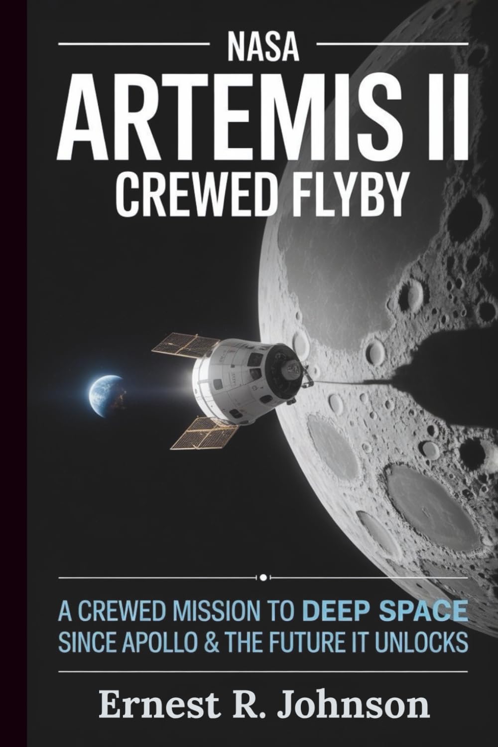 Rappresentazione artistica della capsula Orion in orbita lunare durante la missione Artemis II con equipaggio a bordo