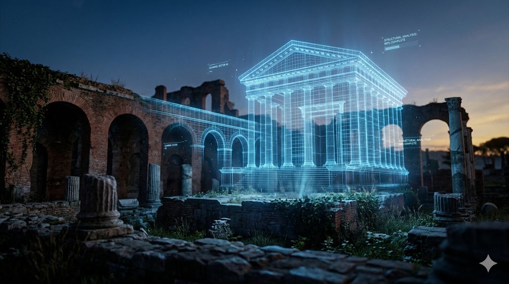 Scansione 3D olografica di sito archeològico con modello digital twin