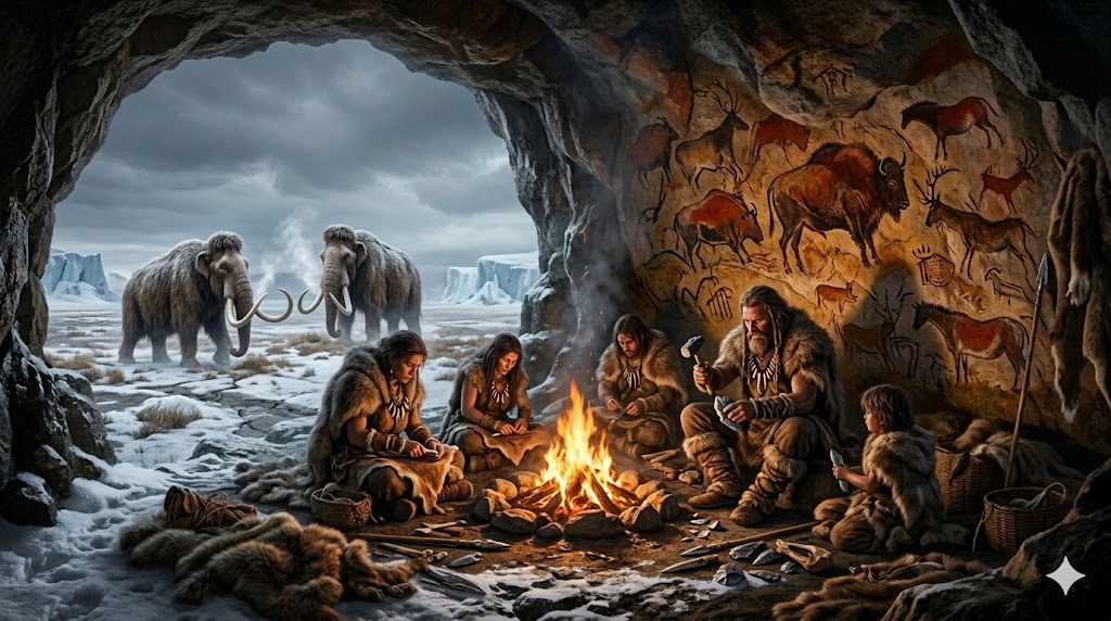 La sopravvivenza nel clima glaciale non era un fatto biologico ma tecnologico e culturale: il corpo dell'Homo sapiens, privo della pelliccia densa dei mammut e della corporatura massiccia dei Neanderthal, non avrebbe potuto resistere alle temperature del Pleistocene superiore senza l'ausilio di un sistema integrato di tecnologie per la termoregolazione artificiale che includeva il controllo del fuoco, la costruzione di ripari, la fabbricazione di abbigliamento cucito e la gestione delle riserve alimentari. Queste tecnologie non erano semplici trovate occasionali, ma il prodotto di decine di migliaia di anni di sviluppo culturale cumulativo, di sperimentazione, di errori e di progressivi perfezionamenti tramandati di generazione in generazione attraverso l'osservazione, l'imitazione e l'insegnamento esplicito.