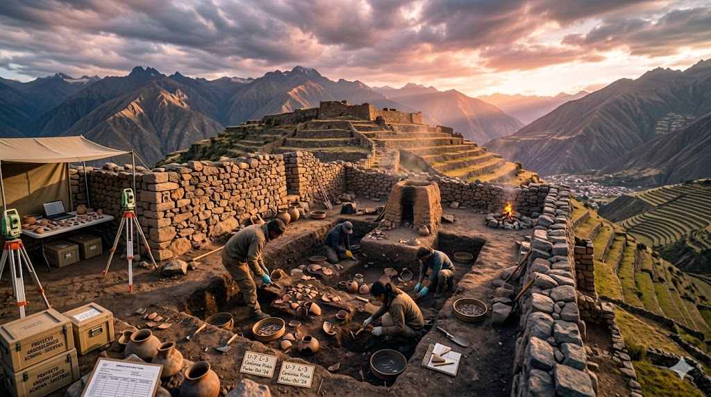La scoperta di vasellame ceramico intatto e di forni in argilla ben conservati all'interno del sito del Progetto Alpaca offre una rarissima finestra diretta sulla vita quotidiana delle popolazioni andine pre-Inca, solitamente documentata solo attraverso frammenti ceramici e resti faunistici che richiedono laboriose ricostruzioni interpretative. I recipienti ceramici rinvenuti intatti appartengono alle forme tipiche del repertorio funzionale domestico andino: olle da cottura con superfici esterne annerite dall'esposizione al fuoco, brocche per la conservazione e il trasporto dei liquidi, piatti e ciotole per il consumo individuale dei cibi, e contenitori di stoccaggio di grandi dimensioni per cereali e tuberi. L'analisi stilistica e petrografica della ceramica permette di identificare le tradizioni tecnologiche locali e di distinguerle dalle influenze esterne, fornendo informazioni preziose sulle reti di scambio e sui contatti culturali della comunità di Achoma con le popolazioni vicine. I forni in argilla, costruiti secondo una tecnica tradizionale ancora praticata in alcune aree rurali andine, sono strutture a cupola con un'apertura anteriore per il carburante e un piano di cottura sopraelevato, adatti per la preparazione di pane di mais e di radici amidacee. La loro posizione all'interno dell'insediamento, in spazi semi-aperti che funzionavano probabilmente come cucine comunitarie, suggerisce un'organizzazione dei compiti alimentari su base collettiva piuttosto che strettamente familiare.